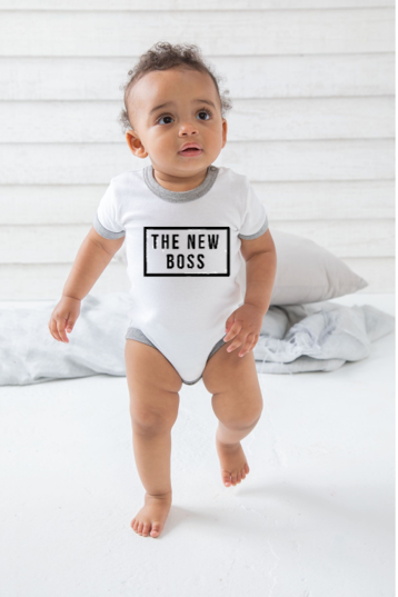 Super soft baby bodysuit with envelope style neckline, binding at edges for shape retention and nickel-free poppers at legs for ease of dressing