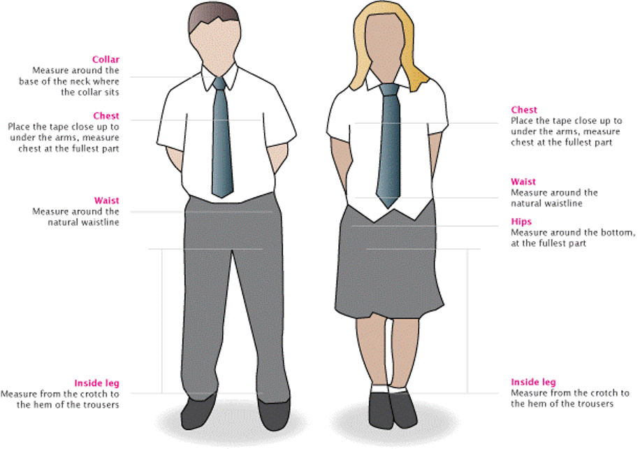 Inside leg: Measure with shoes on, to approximately 5cm above the ground.